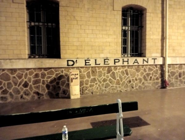 le pont du métro au dessus des voies de chemin de fer de la gare du nord – une image de ville (dans la perspective, derrière les barrières de ferraille qu’on distingue, une bonne centaine de tentes où tentent de s’abriter des malheureux avant que les séides de beauvau ne les chassent – ils et elles sont là –  « plus personne ne dormira dans la rue » promettait-il)