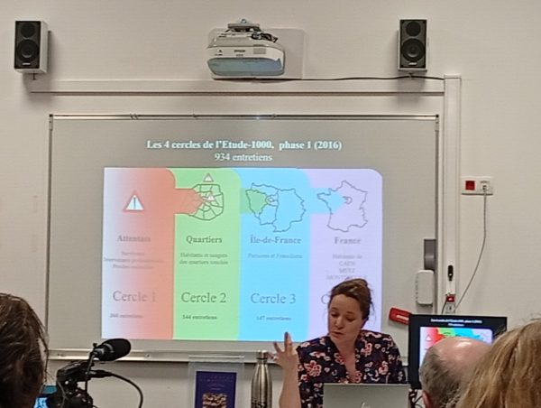 (bon évidemment on’y voit rien – sinon que nous étions une vingtaine dont quatre de la gent masculine – c’état en regard de la journée du droit des femmes – )  ce sera plus lisible ici (le compte rendu du compte rendu sera opéré j’espère ces temps ci) – ici un peu de méthodo (avec Charlotte Lacoste – linguiste déjà croisée – qui nous explique)