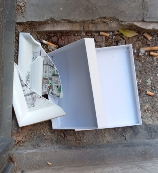 mon intention était d’en découvrir la valeur (la valeur marchande – la marque à Porfirio – mais on s’est abstenu de l’indiquer en vitrine (ce en quoi on est dans des dispositions légales qui peuvent nuire à l’image – clcdld) on ne saura pas (je n’allais pas entrer demander d’autant que l’officine était close à ce qu’il m’est apparu : c’eut été d’une vulgarité sans nom – hein) xxl quand même sûrement (350 ?) – cette chose brisée