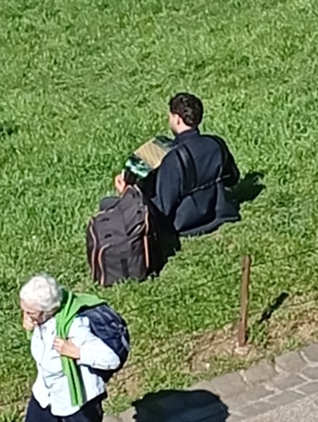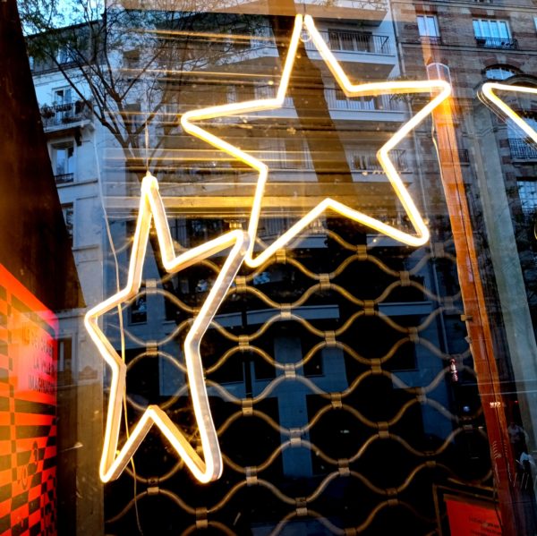 la mode du sac à dos est magnifique (couplée à celle du vélo et de la gourde en métal, on dispose du kit du parfait urbain – tatoué ? percé ? augmenté d’oreillettes diffusant podcasts ou hits? on voit ressortir les mollets des bermuda – il fait beau, un beau soleil, une carte de Chagall – promenade en ville à nouveau (les néons devanture de librairie comme les atours des contemporains)